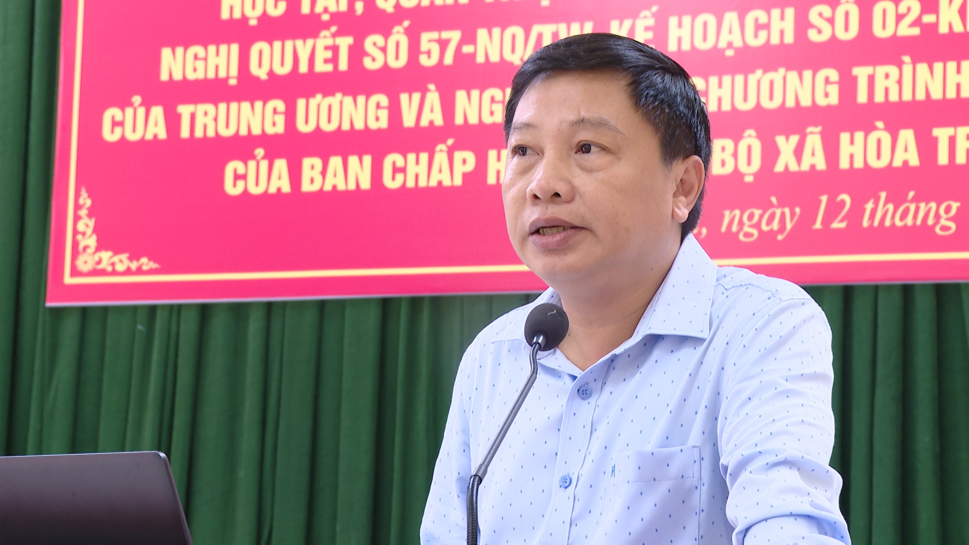 Sáng ngày 12 tháng 11 năm 2025, Ban Thường vụ Đảng ủy xã Hòa Trạch, tỉnh Quảng Trị tổ chức hội nghị học tập, quán triệt và triển khai thực hiện Nghị quyết số 57- NQ/TW, Kế hoạch số 02-KH/BCDTW của Trung ương và các Nghị quyết, Chương trình hành động của Ban Chấp hành Đảng bộ xã Hòa Trạch. Dự hội nghị có đồng chí Lê Minh Đức, Bí thư Đảng ủy, Chủ tịch Hội đồng nhân dân xã; đồng chí Hoàng Duy Khiêm, Phó Bí thư Thường trực Đảng ủy xã; đồng chí Phạm Đức Hùng, Uỷ viên Ban thường vụ, Phó Chủ tịch Uỷ ban nhân dân; các đồng chí Thường trực, Ban Thường vụ Đảng ủy, Ban Chấp hành Đảng bộ xã, cùng các ban, ngành, đoàn thể, đơn vị trên địa bàn xã.