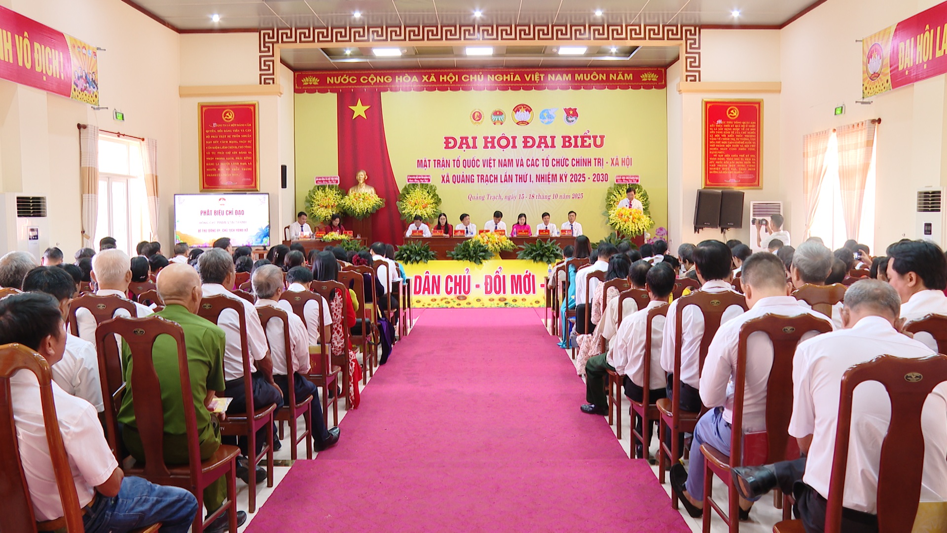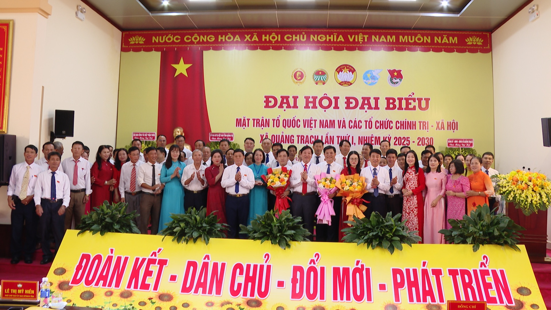 Ngày 16 tháng 10 năm 2025, Ủy ban Mặt trận Tổ quốc Việt Nam xã Quảng Trạch đã tổ chức thành công Đại hội đại biểu lần thứ I, nhiệm kỳ 2025 – 2030. Tham dự Đại hội có bà Lê Thị Mỹ Hiền, Phó Chủ tịch Ủy ban Mặt trận Tổ quốc Việt Nam tỉnh; đồng chí Phan Văn Thanh, Bí thư Đảng ủy, Chủ tịch Hội đồng nhân dân xã; đồng chí Nguyễn Viết Xuân, Phó Bí thư Thường trực Đảng ủy; đồng chí trần Quang Trung, Phó Bí thư Đảng uỷ, Chủ tịch Uỷ ban nhân dân xã; các đồng chí trong Ban Thường vụ Đảng ủy, lãnh đạo Uỷ ban nhân dân xã, các ban, ngành, đoàn thể, cơ quan, đơn vị, địa phương, cùng 153 vị đại biểu, đại diện cho khối đại đoàn kết toàn dân trên địa bàn xã.