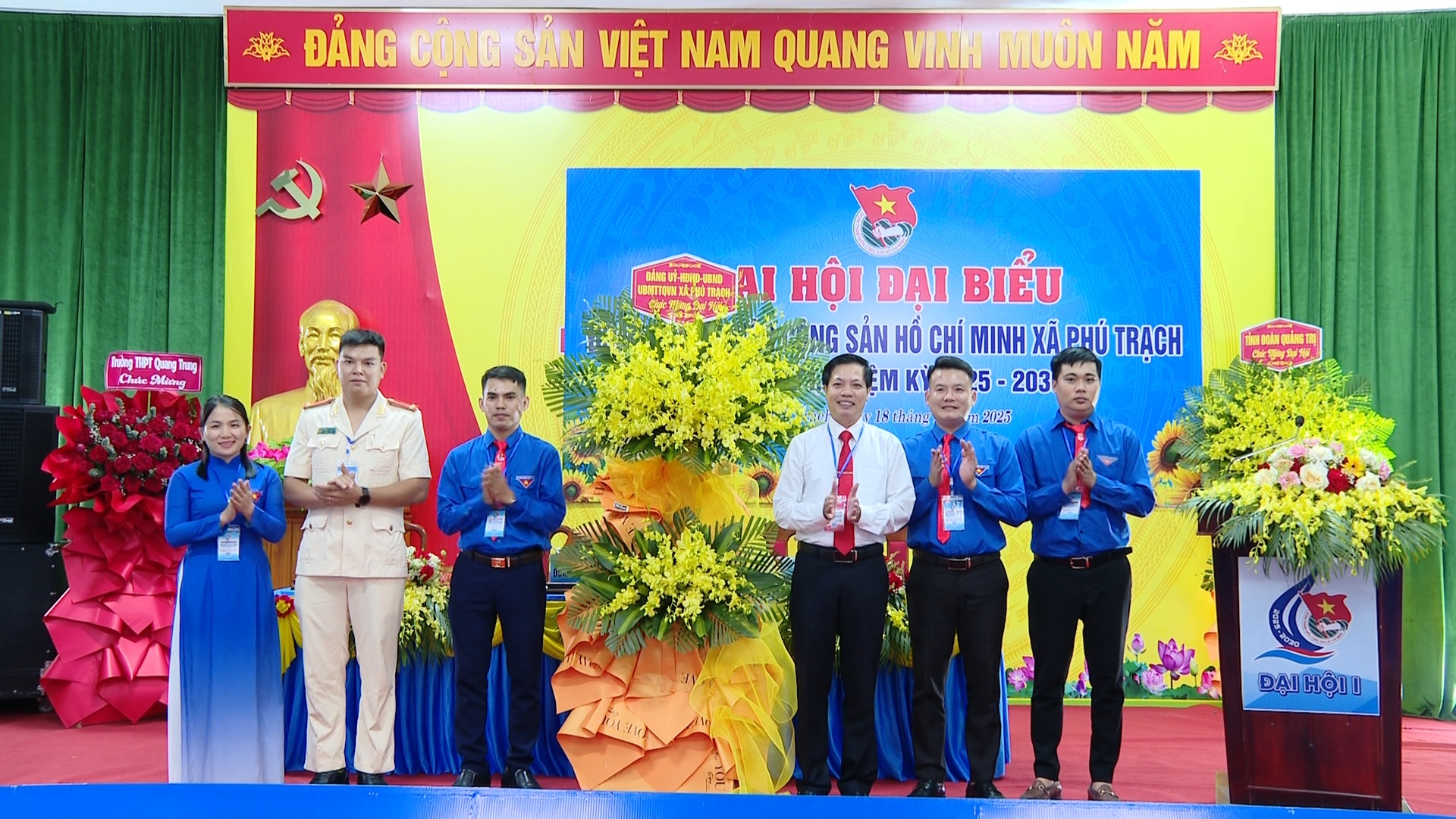 Đồng chí Đinh Trung Hiếu, Phó Bí thư Thường trực Tỉnh Đoàn, Chủ tịch Hội đồng Đội tỉnh; lãnh đạo xã Phú Trạch tặng hoa chúc mừng Ban Chấp hành Đoàn Thanh niên cộng sản Hồ Chí Minh xã Phú Trạch khóa I